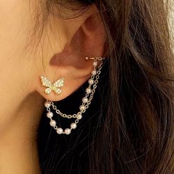 New Unworn Butterfly Gold Pearl Chain Ear Cuff Earrings $12Mission Viejo, CA