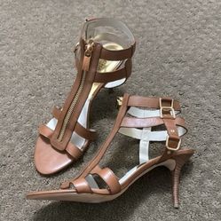 MICHAEL Michael Kors Tan Brown Strappy Front ZIP Heeled Sandal