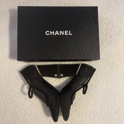 CHANEL Mesh Suede Grosgrain Pearls Cap Toe Open Slingback Pumps 39.5 Black$1,200Mission Viejo, CA