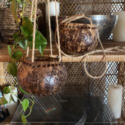 3 Vintage Boho Coconut Hanging Lights Or Planters$30Wildomar, CA