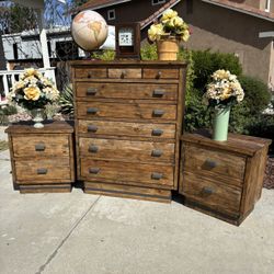 Rustic Solid Distressed Wood 12 Drawer Dresser Chest of Drawers and Nightstand Furniture Set Excellent Condition Originally $3,000$1,350Lake Elsinore, CA