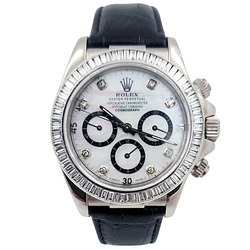 *Men's Rolex Daytona 40mm Leather Band Watch with Mother of Pearl Diamond Dial and Diamond Bezel. (Pre-Owned 116518)$54,995Ladera Ranch, CA