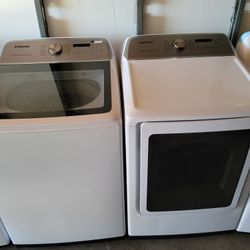 Like New 2020 Samsung Large Capacity 5.0cu Ft Top Load Washer With Stainless Steel Tub And Gas Dryer Set $850Escondido, CA