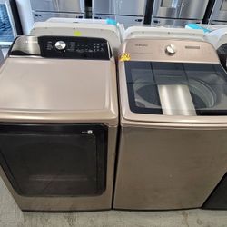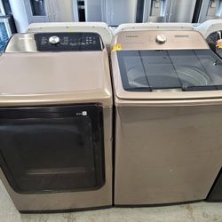 Samsung Extra Large Capacity 5.4cu Ft Top Loading Washer And Gas Dryer Set $850Hemet, CA