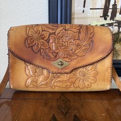 Vintage 1970’s Flores Leather Tooled Embossed Floral Bag - Satchel Crossbody $75Oceanside, CA