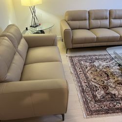 New Top Grain Leather Couch / Love Seat. Taupe. 60x37x34H; 82x37x34H. Free Delivery!$1,500Encinitas, CA