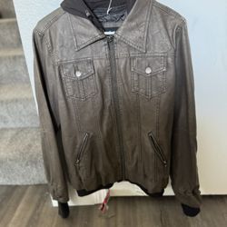 Leather Jacket With Hood. Women. Large $18Mission Viejo, CA