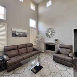 Brown Faux Leather Sofa Set With Recliner $999Menifee, CA