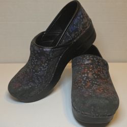 Dansko Size 37 Euro 7 US Pastel Bubbles On Black Leather Work Shoes$45Escondido, CA