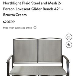 41”Cream Plaid Steel and Mesh 2-Person Loveseat Glider Bench$100Wildomar, CA