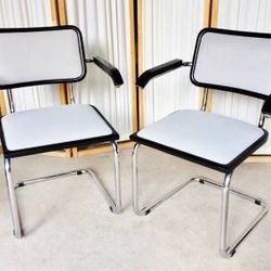 AUTHENTIC VINTAGE KNOLL MARCELBREUER CANTILEVER CHROME CESCA ARM CHAIRS WITH RARE BLACK WOOD FRAME AND GREY UPHOLSTERY - Set Of 4$300Winchester, CA