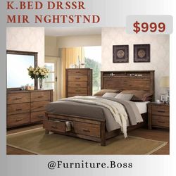 King Size Bed With Storage Drawers - 4pc Bedroom Sets - Bed Dresser Mirror Nightstand$999Menifee, CA
