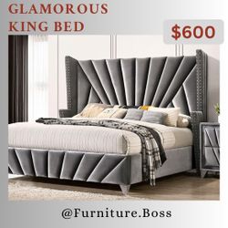 King Size Canopy Bed - Velvet Tufted Beds - Grey, Beige, Cream, Black, Blue Beds$650Lake Elsinore, CA