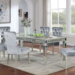 Brand New Gray Velvet Silver Mirror 7pc Dining Table Set $2,299Murrieta, CA