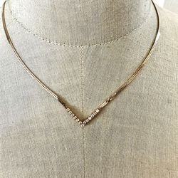 Avon Gold Tone Herringbone Chain Chevron V-shape Rhinestone V pendant Necklace $25Encinitas, CA