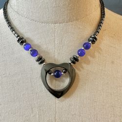 Hematite Heart And Blue Cats Eye Beaded Necklace $18Encinitas, CA