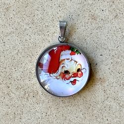 🎅 Fun, vintage Christmas, Santa art, circle pendants in silver tone with glass dome setting$7Carlsbad, CA