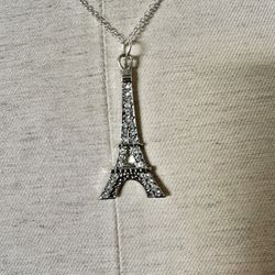 Silver Tone Rhinestone Eiffel Tower Pendant Necklace $18Encinitas, CA