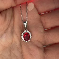 Red Oval Cz 925 Sterling Silver Necklace $110Temecula, CA