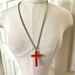 Orange Cross Silver Tone Pendant Necklace $14Carlsbad, CA