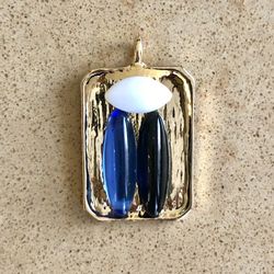 ๐ Pretty, mosaic pendant made from gold tone rectangle frame setting and vintage black, blue and white glass pieces$7Carlsbad, CA