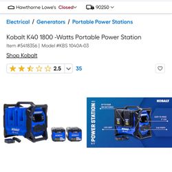 Kobalt K40 1800-Watt Portable Power Station$450Lake Elsinore, CA