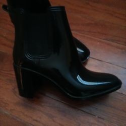 Jeffrey Campbell Shiny Black Stretchy Rain Proof Two Inch Boots $30Oceanside, CA