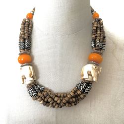 🦓 Hand-Carved Bone Elephant & Batik Bead Tribal Statement Necklace$65La Costa, CA