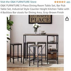5 Piece Grey Dining Set Counter Height 2 Open Shelves Brand New In Box Firm Price $540$540Murrieta, CA