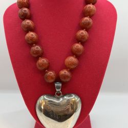 Vintage Taxco Sterling Silver Heart with Sponge Coral Beads Necklace/Bracelet ❤️$450Carlsbad, CA