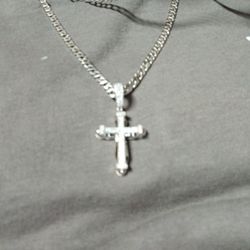 Vintage Sterling Silver Cross With White Blinks Gemstones Necklace $28Oceanside, CA
