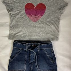Justice Girls Size 7 Sequin Heart Shirt And Denim Skirt$5Hemet, CA