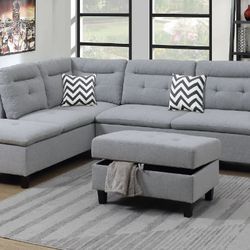 GRAY POLYFIBER SECTIONAL SOFA COUCH REVERSIBLE CHAISE STORAGE OTTOMAN - SILLON SECCIONAL MESA DE CENTRO$799San Marcos, CA