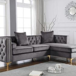 GLAM DARK GRAY VELVET TUFTED GOLD ACCENTS SECTIONAL SOFA STORAGE LOUNGE CHAISE - SILLON SECCIONAL$2,499San Marcos, CA