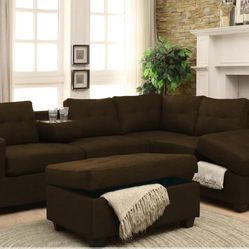 CHOCOLATE BROWN Reversible Sectional Sofa Drop Down Tray + Storage Ottoman in Woven Fabric - SILLON SECCIONAL CAFE $899San Marcos, CA
