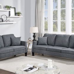 Brand New 2 Tone Light Grey Sofa Set With Black Piping And Chrome Modern Legs$420Hemet, CA