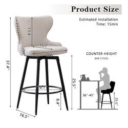 Set of 3 Beige 26-Inch Swivel Counter Height Bar Stools – Upholstered Linen Fabric Seats with Bronze Nailhead Trim and Sturdy Metal Frame$185Laguna Niguel, CA