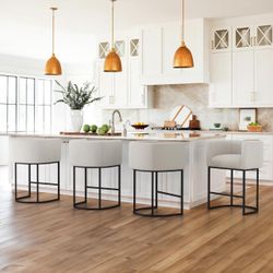 LUE BONA 27" H Counter Height Bar Stools Set of 4, Modern Barrel Counter Stools with Backrest and Arms, Black Metal Frames, Linen Fabric Upholstered A$220Temecula, CA