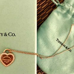 Tiffany & Co. *RARE Discontinued Limited Edition!* 18k Pink Gold Necklace + Genuine Diamond Encrusted: "Return To Heart” Chain Pendant $1,380Rcho Santa Fe, CA