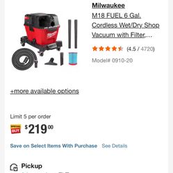 Milwaukee Vacumm Wet/dry 6gal M18$190Mission Viejo, CA