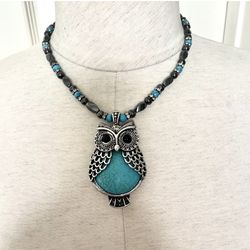 Owl Turquoise Hematite Pendant Necklace $28Carlsbad, CA