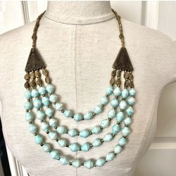 Blue Paper Bead Brass Tone Multi Strand Statement Necklace $28Carlsbad, CA