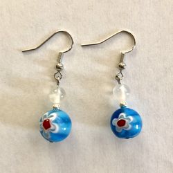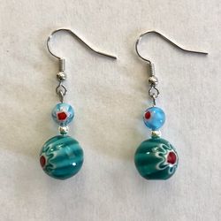 🦋 Pretty, Murano style, turquoise, red and white flower beaded glass earrings$7Carlsbad, CA
