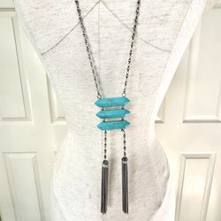 Charming Charlie Long Silver Tone Faux Turquoise Tassel Necklace $25Encinitas, CA