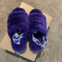 UGG Fluff Yeah Slide Tie Dye Sandals 1117326-MGNL, black/white/purple, Size 7.0 UGG shopping bag avail per requested only thanks! $73La Costa, CA