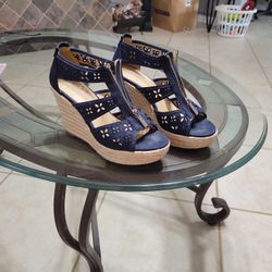 Size 8 women's shoes, navy denim, Heels, wedges$10Murrieta, CA