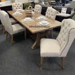 7 Pc 77” Rustic Oak Dining Table Set Brand New In Box $2,150Temecula, CA
