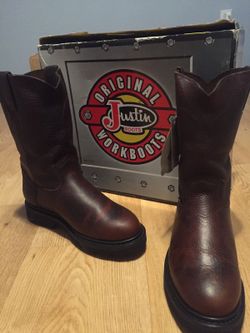 Justin brown leather pull on work boots size 6 men’s$80Carlsbad, CA