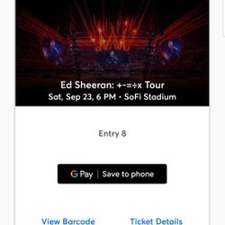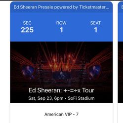 Ed Sheeran 09/23$600Rialto, CA
