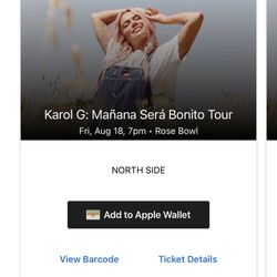 Karol G One Ticket For Aug 18th$250Fontana, CA